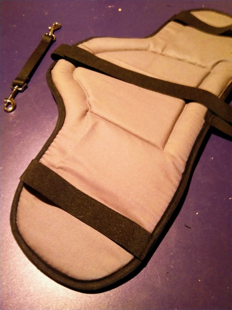 Composé d’un ou deux panneaux de mousse (selon l’espèce à qui il est destiné) de 1 ou 2 cm d’épaisseur, rigides, avec de larges sangles , assemblées en « y » (meilleure répartition des pressions), recouverts de toile imperméable (16 coloris). Large dégagement de la colonne vertébrale (pour les équidés et les chèvres). Muni d’une sangle ventrale, de 4 mousquetons zingués (charge de rupture de 250kg) pour y accrocher les sacoches ou les sacs de course et possibilité de placer une bricole, un avaloir et/ou un élastique pour coincer un vêtement sur le dessus.