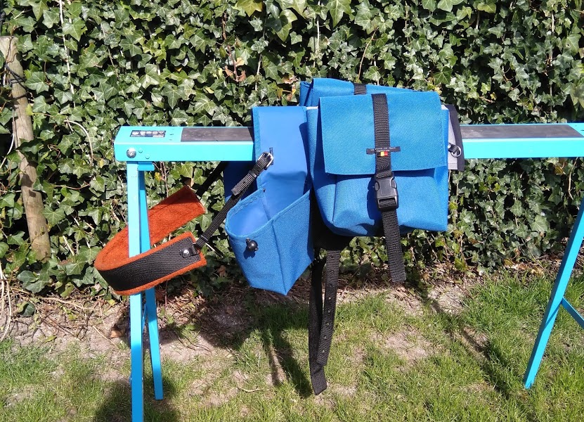 - Sakoches, en toile solide et imperméable, 16 coloris au choix (voir plus bas), fermées par un ou deux clips en plastique (ou velcro, sur demande), avec anneaux pour accrocher au Sakado et possibilité d’une sur-sangle pour fixer et éviter les ballottages (en option), d’une ou deux poignées amovibles pour porter les Sakoches quand elles ne sont pas sur le Sakado, d’un liseré de couleur ou d’un passepoil réfléchissant (en option). Vendues par paire. 4 tailles ou sur mesure
