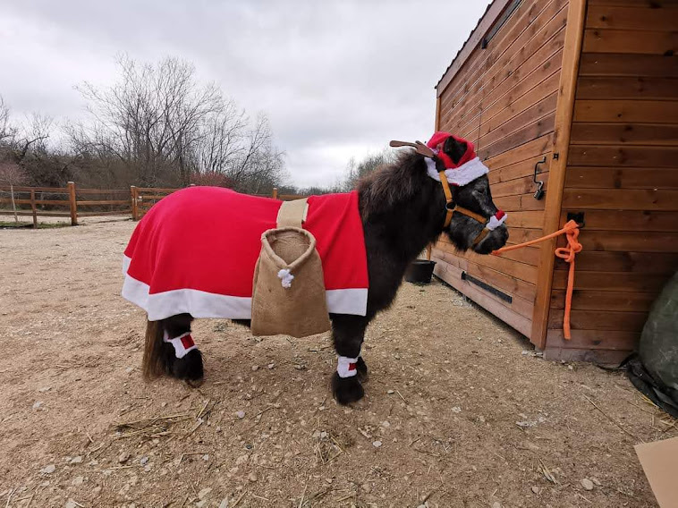 Voici un mini-Sakado avec sakoches intégrées, développé spécialement pour les ânes, poneys (mules, chèvres, moutons, cochons, lamas, etc…) qui se transforment en aidants de Saint-Nicolas ou lutins de père Noël chaque année.