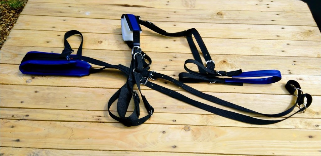 Harnais d’attelage pour ruminant, conçu pour tirer de légères charges sur de courtes durées (pas de travaux de maraîchage par exemple). En polypropylène, nombreuses options possibles