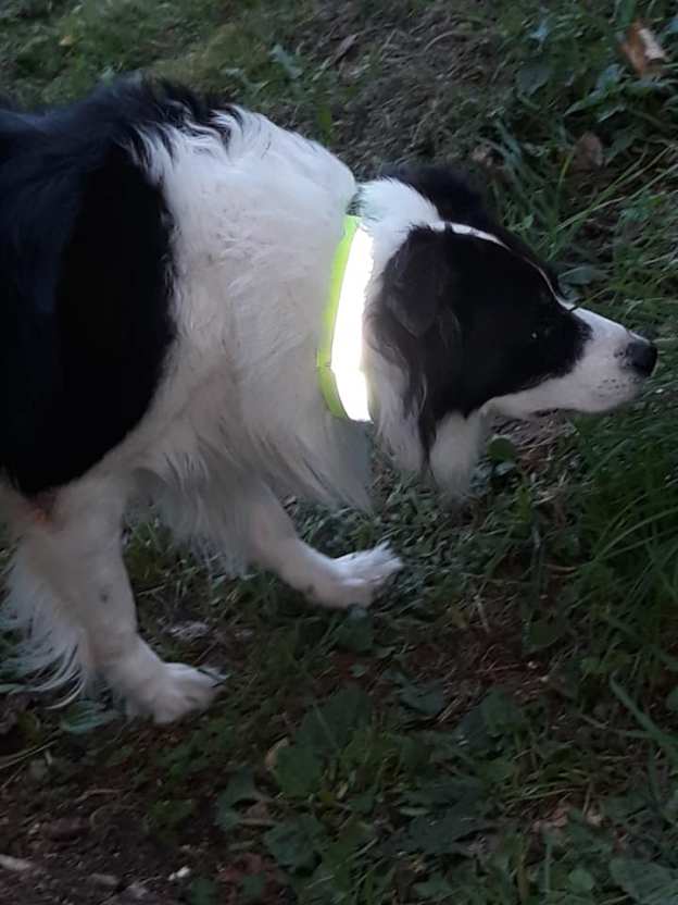 En softshell fluo avec passepoil réfléchissant, 30cm de long, se passe sur la laisse