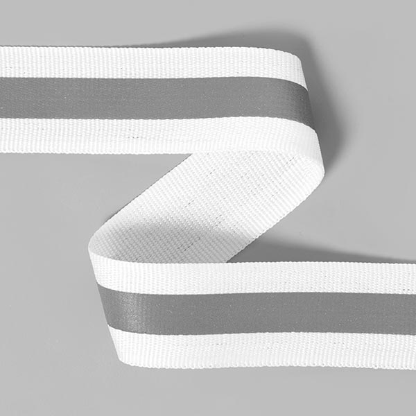 En ruban blanc, noir, rouge ou fluo orange ou jaune, avec une bande réfléchissante, fermé par un velcro (idéal donc également pour les chats). Largeur de 10, 25 ou 50mm selon le tour du cou et la couleur du ruban. Sur mesure