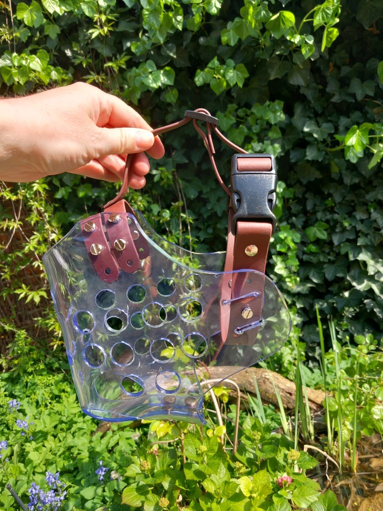 - Anti-glouton ou pica: plus fine, légères et souple, ne protège pas des morsures mais empêche l’ingestion de matières non-comestibles (fientes de poules, fumier, cadavres dans les bois, poisons, etc…) qui risquent de rendre votre chien malade. La muselière recouvre l’avant de la truffe et les trous d’aération sont répartis afin de ne pas permettre le passage des matières non-souhaitées tout en gardant une bonne ventilation. Le treathole n’est pas conseillé pour ce genre de muselière
