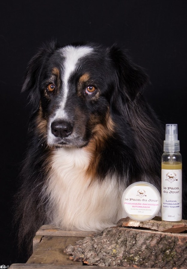 INFO: A dessein, les huiles essentielles utilisées ici ne sont pas les mêmes que celles utilisées pour les produits de soin. Pour ne pas que le chien établisse un rapport entre les senteurs et se méfie des produits de soin