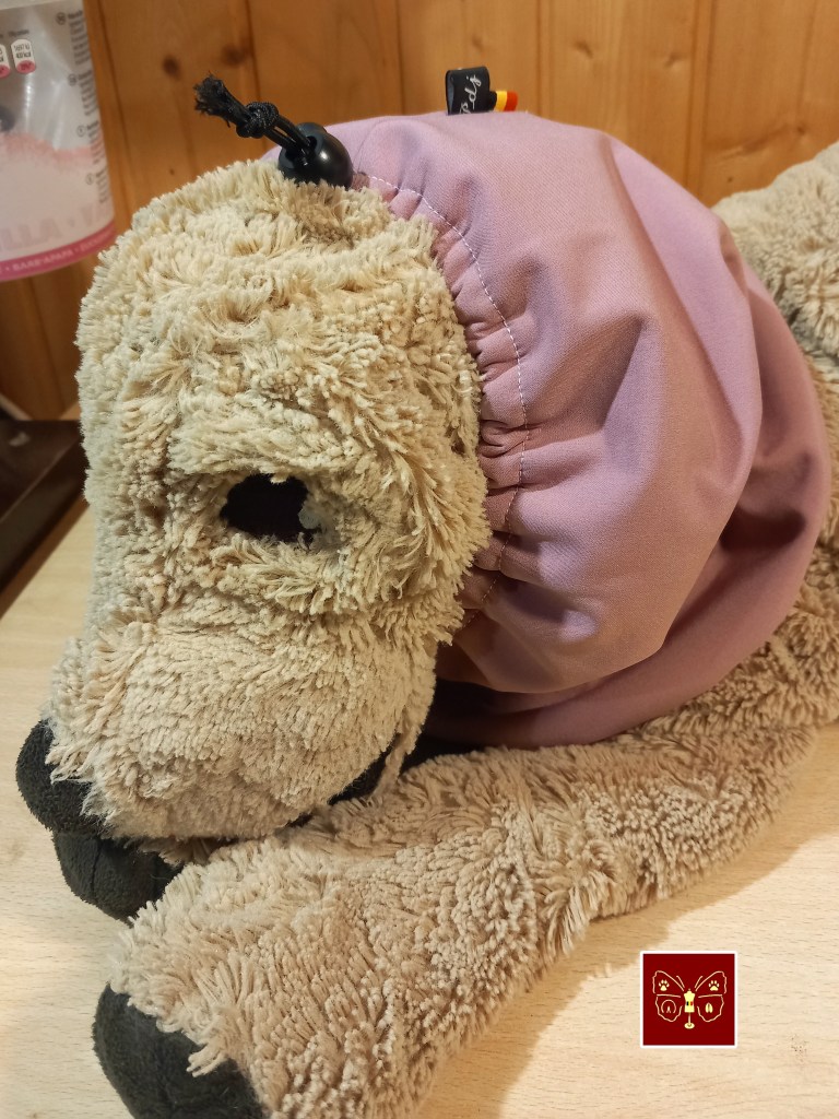 Pour les mesures, il me faut le tour de la tête au plus large (pris au contact sans serrer juste devant les oreilles), la longueur du cou, depuis le crâne jusqu’au épaules et, pour les cache-oreilles, le tour de la tête sans serrer, oreilles comprises