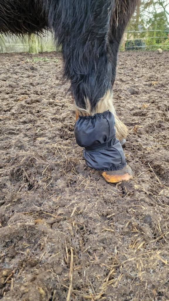 Chaussettes imperméables à enfiler aux jambes de votre très poilu (style Irish) lors de ses sorties en zone boueuse, qui limitent fortement les dreadlocks indésirables et leur humidité inconfortable.