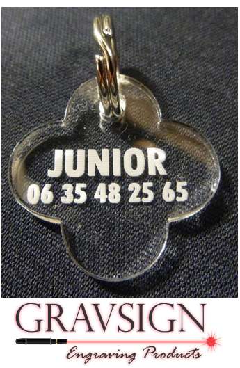 En collaboration avec Gravsign (société belge spécialisée dans les médailles pour animaux depuis 1996), je suis en mesure de vous proposer des médailles robustes, inaltérables (même dans l’eau de mer) et colorées, en alu ou en acrylique, marquées au laser