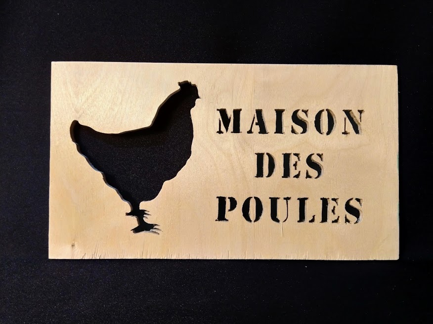 Plaque « maison des poules » en contre-plaqué 10mm, 30cm x 17cm, VERNI: 25€