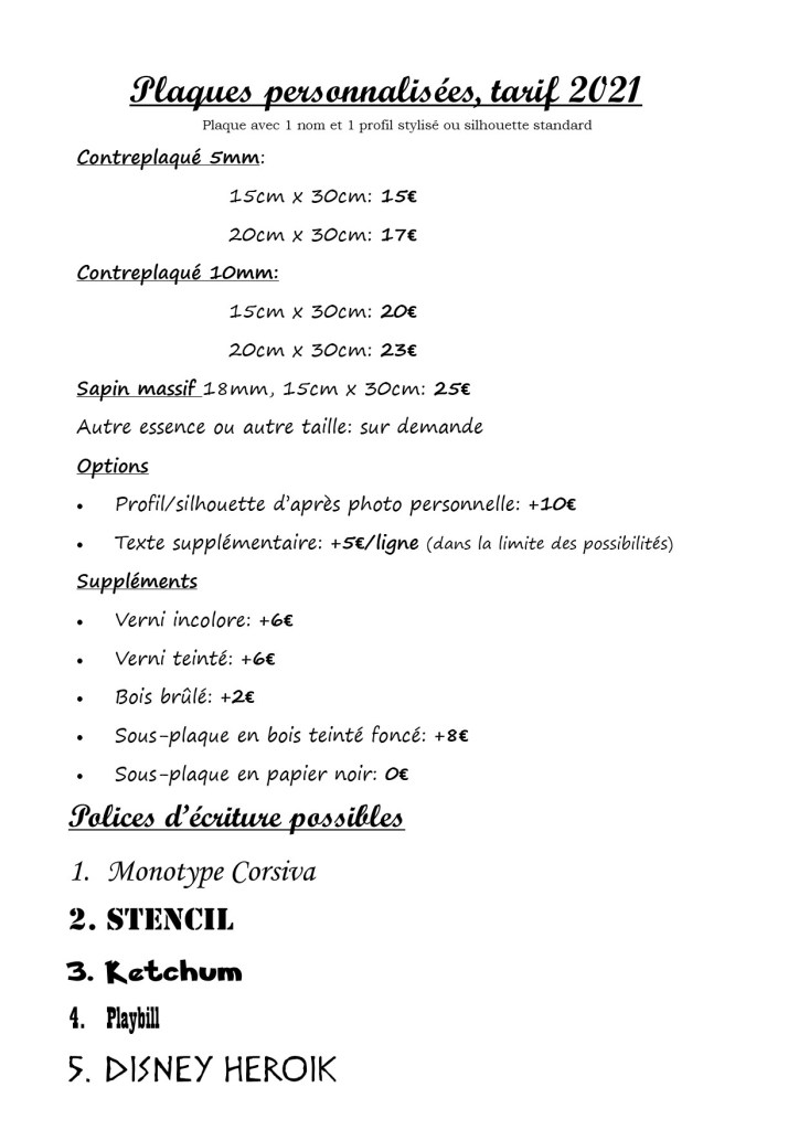 Plaque personnalisée en bois non-traité. (voir plus bas pour le tarif)