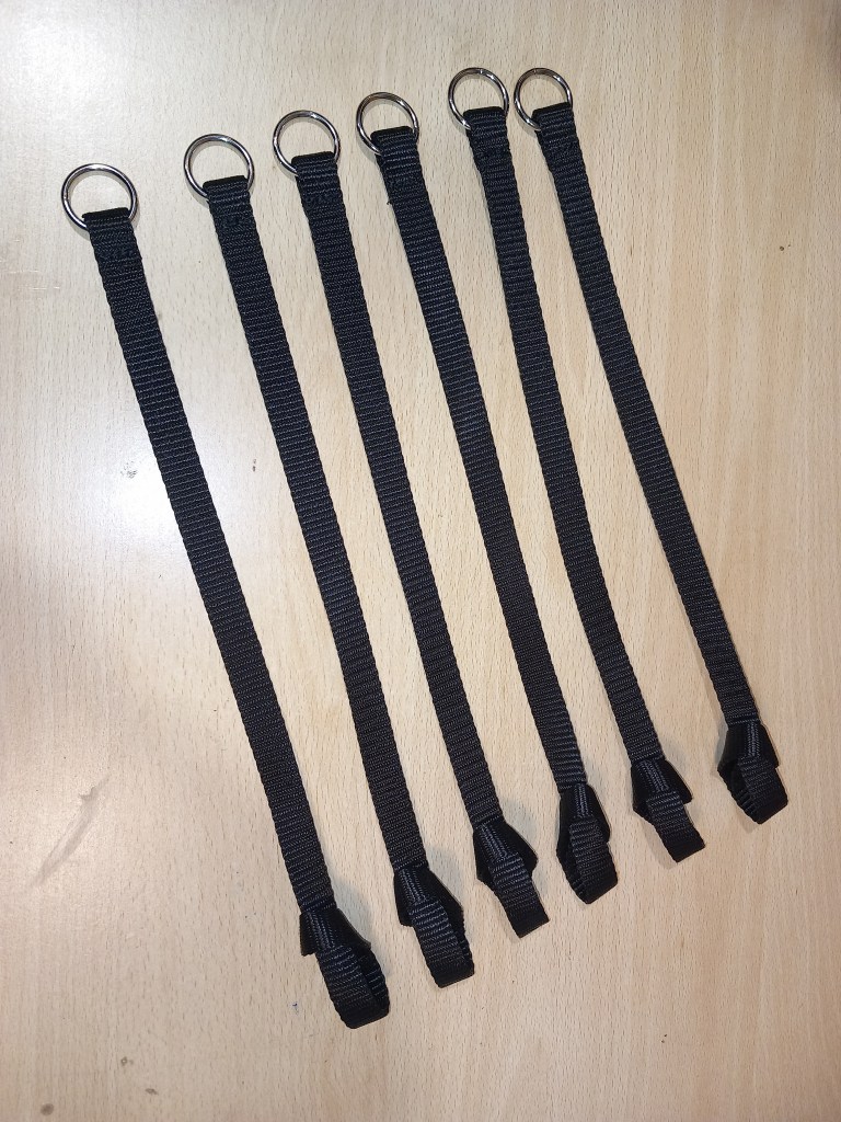 NOUVEAU: pour les crottinettes destinées à être utilisées avec un surfaix ET une selle/bardette, ou sur une selle qui ne dispose pas d’anneaux, il existe également des rallonges pour les sangles latérales