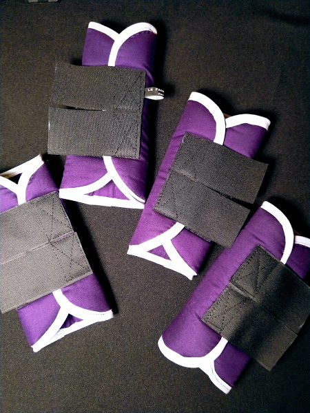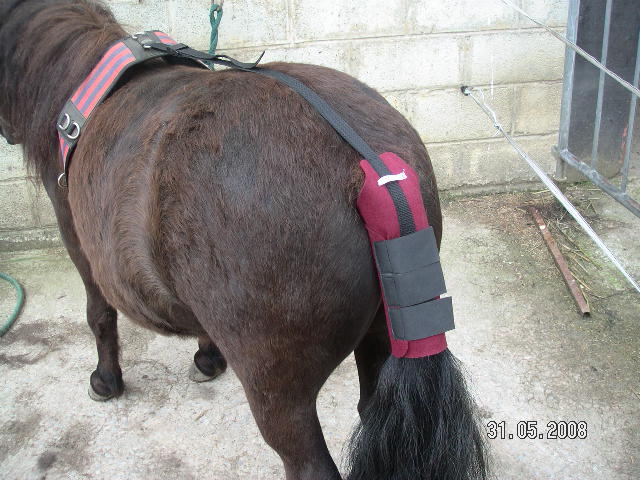On ne sait jamais ce qui peut se passer durant un transport, un coup ou une blessure est plus vite arrivé qu’on ne le pense. Ici je vous présente des guêtres de transport basses (en taille Shetland, âne ou mini) et des protège-queues.