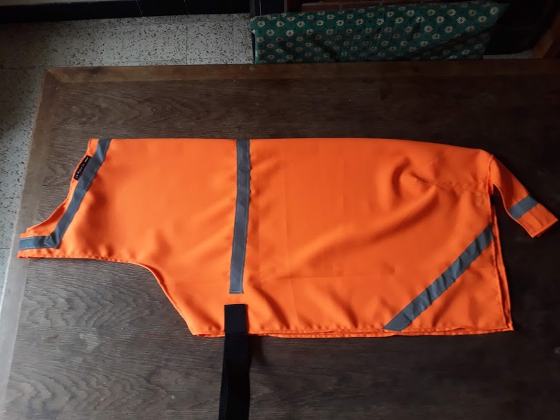 Couvre-reins d’attelage fluo en softshell (déperlant, respirant, doublé polaire)